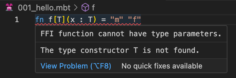 更友好的错误提示,试图给FFI声明类型参数的代码会报错