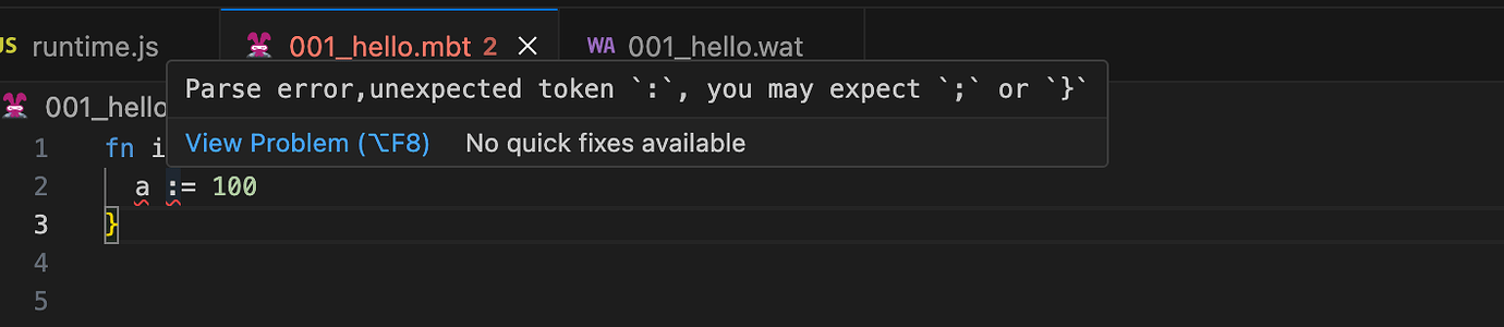 本地 VS Code 插件可以自动执行 moon check --watch ,现在不再需要手动执行。