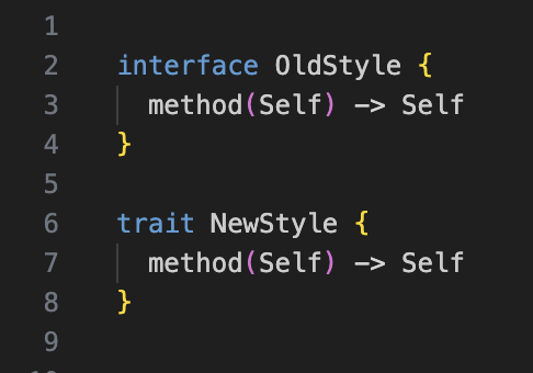 根据社区的反馈,将关键字 interface 修改为 trait,暂时保留对关键字interface的兼容: