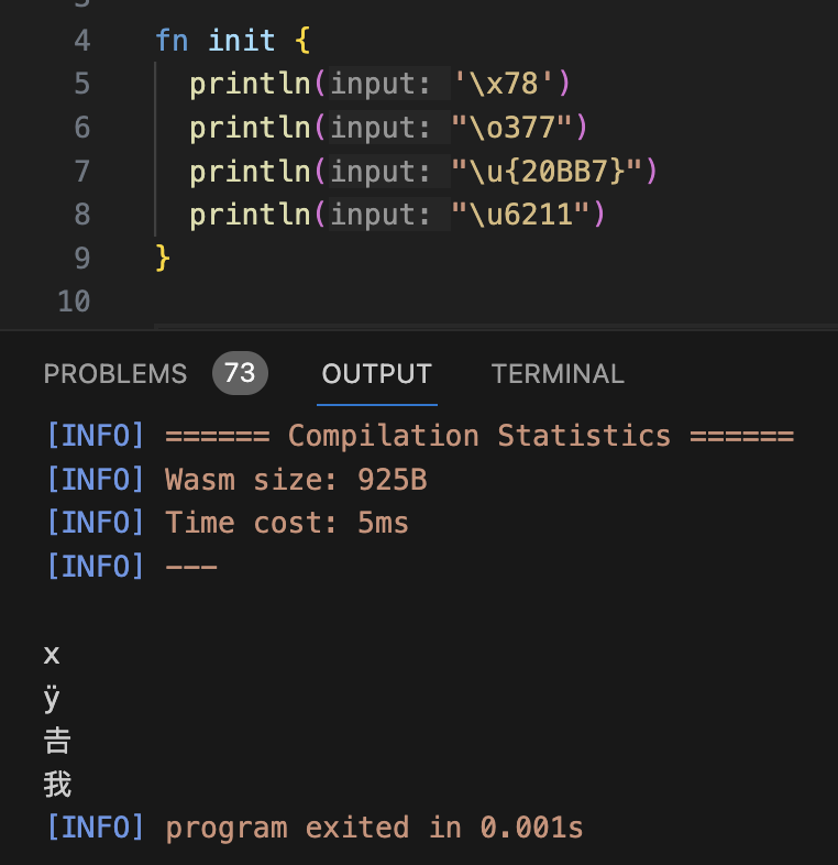 7. 字符串和char字面量支持unicode转义、十六进制转义和八进制转义