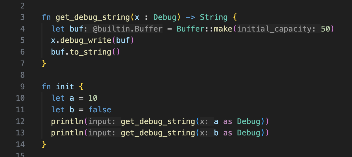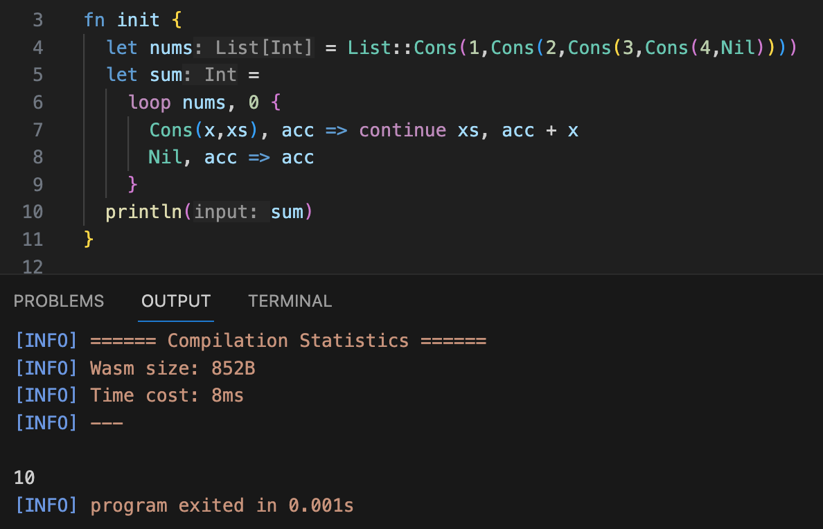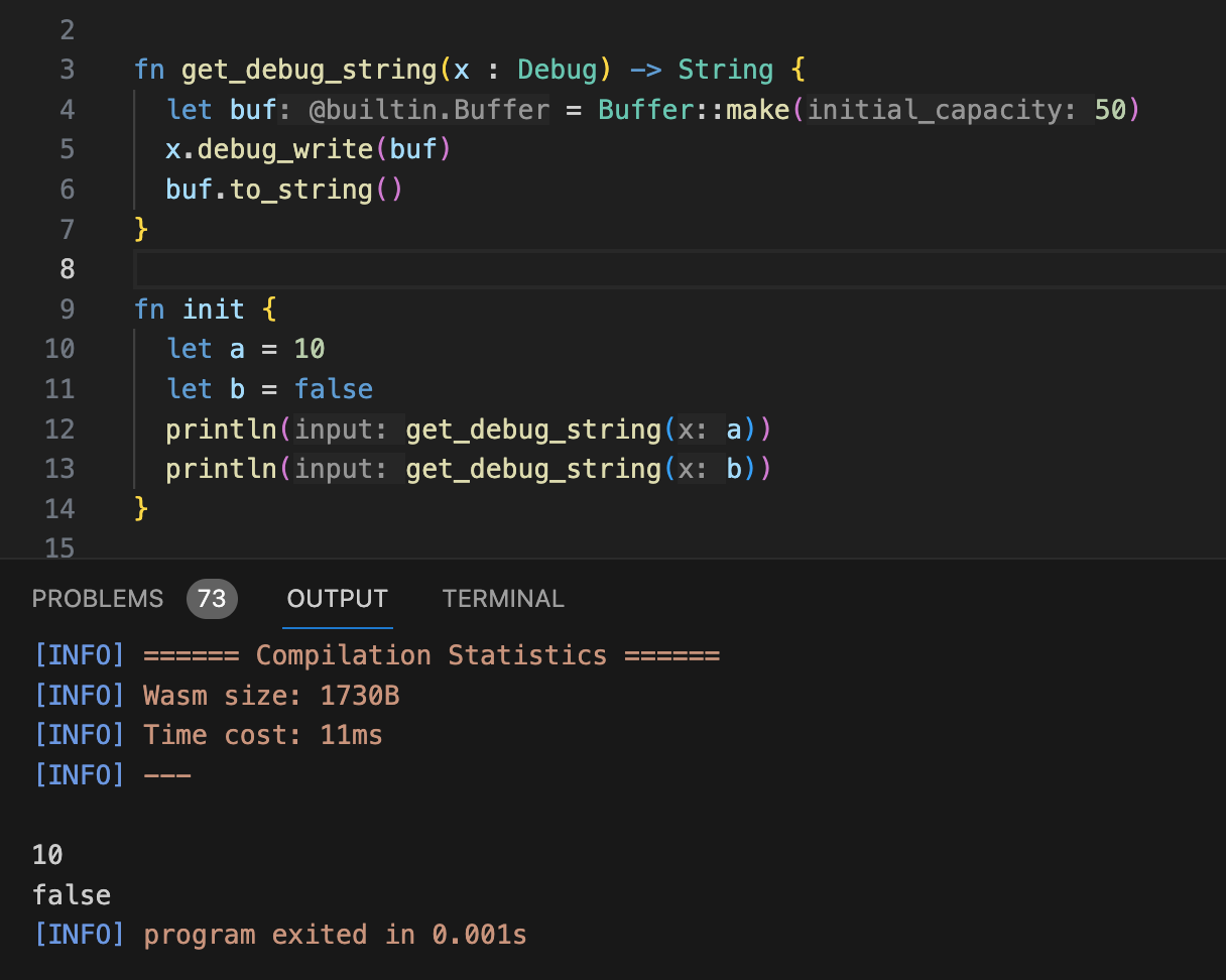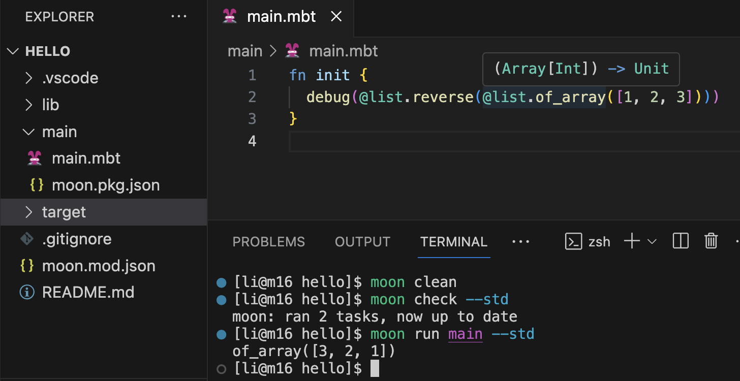 最新的安装脚本会将标准库下载到 ~/.moon/lib/core 目录下。目前标准库的内容以及相关IDE支持暂不稳定,因此构建系统默认不链接标准库。对于想要提前体验标准库功能的开发者们,可以在 moon check|build|run|test 命令后添加 --std 选项用于链接标准库到当前项目。